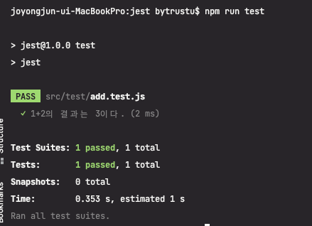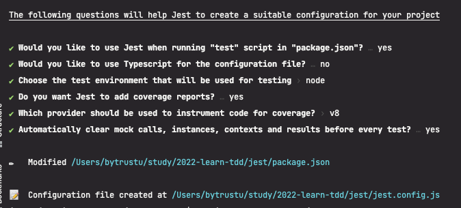 여기까지 진행 되었다면 이 프로젝트는 Jest를 사용할 준비가 되었다. 🎉